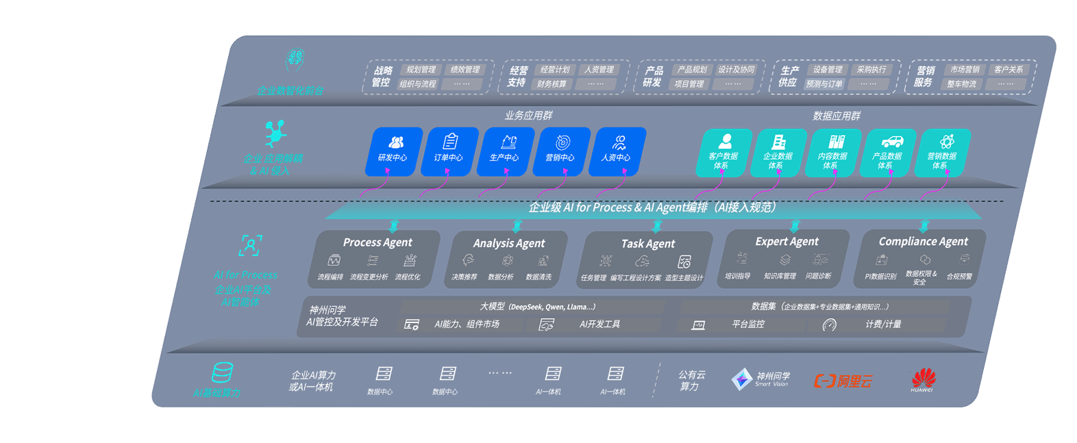 端到端的一站式AI工作空间深度融合了从企业战略规划到日常经营的全流程业务板块,,定向解决车企内部领域多、、、、部门多、、链条长、、场景碎片化等难题,,,支持车企快速构建以AI为核心的生产力写作体系,,,,实现任务执行与AI能力的无缝集成与交互